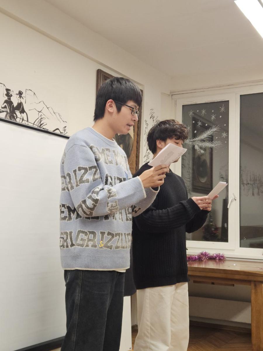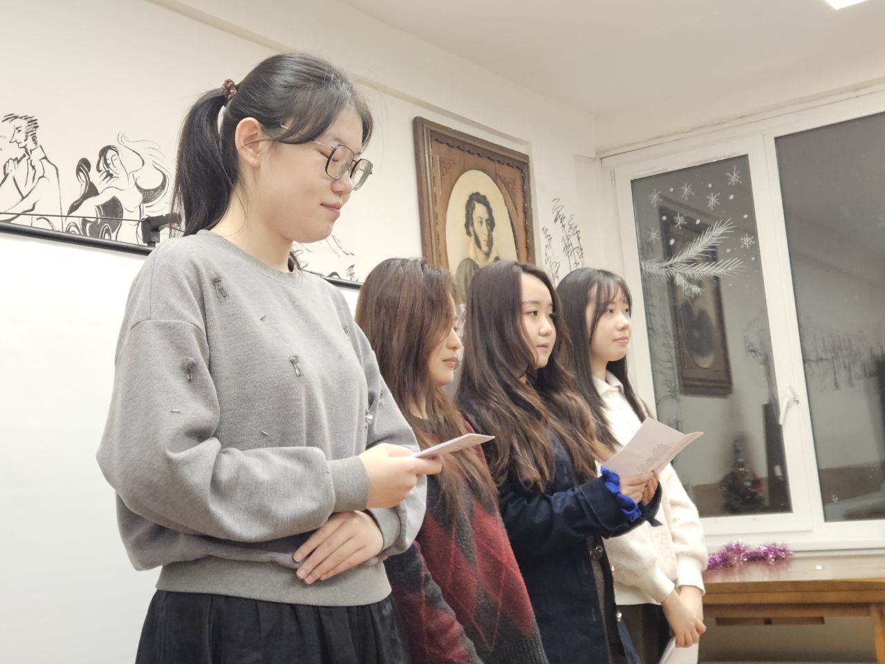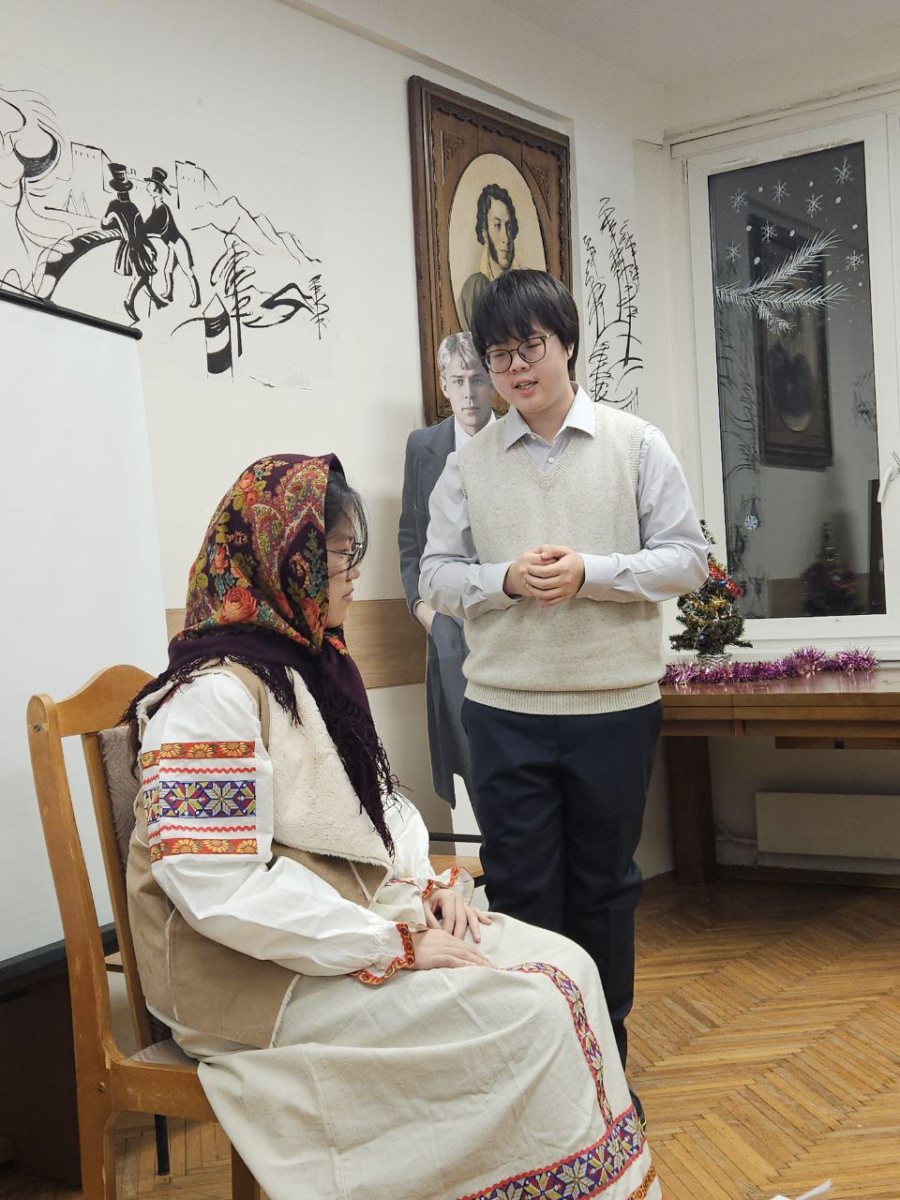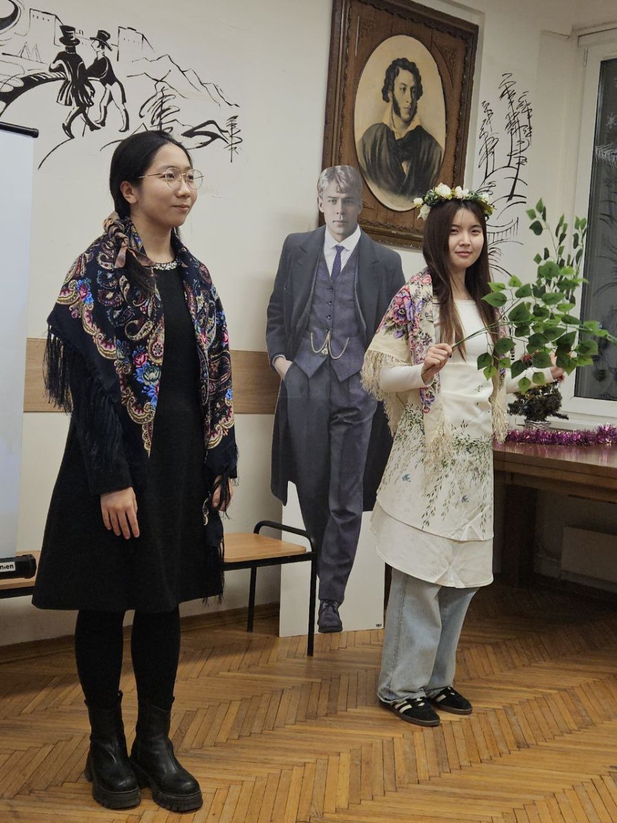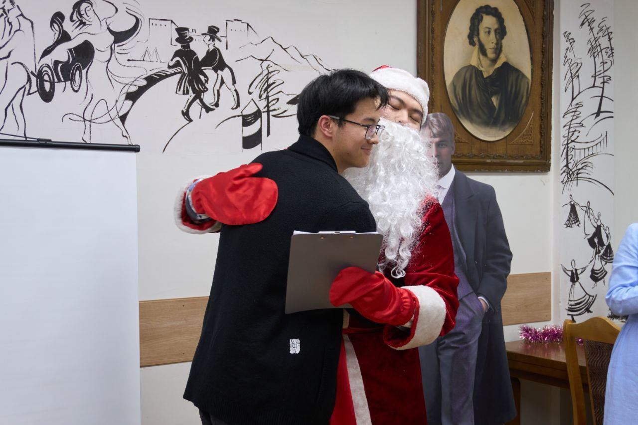 В 2025 году исполнилось 130 лет со дня рождения Сергея Александровича Есенина, одного из самых известных русских поэтов XX века. В его творчестве нашли отражение величие и мудрость природы, красота и спокойствие русской деревни, размах русской души, любовь к женщине, движение времени и бурление революции. 2 декабря 2025 г. в Пушкинской гостиной филологического факультета состоялся вечер иностранных стажёров, посвящённый жизни и творчеству Сергея Есенина. Учащиеся читали стихи, исполняли музыкальные произведения, выступали с докладами и театральными постановками, отвечали на вопросы праздничной викторины. Мероприятие также посетили особые гости – Дед Мороз (Лю Хаобо) и Снегурочка (Лу Юйхань), которые поздравили ребят с наступающими зимними праздниками и пожелали удачи на предстоящих зачётах и экзаменах.