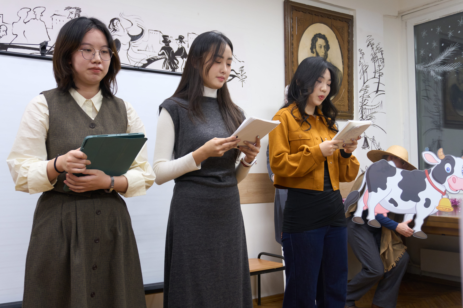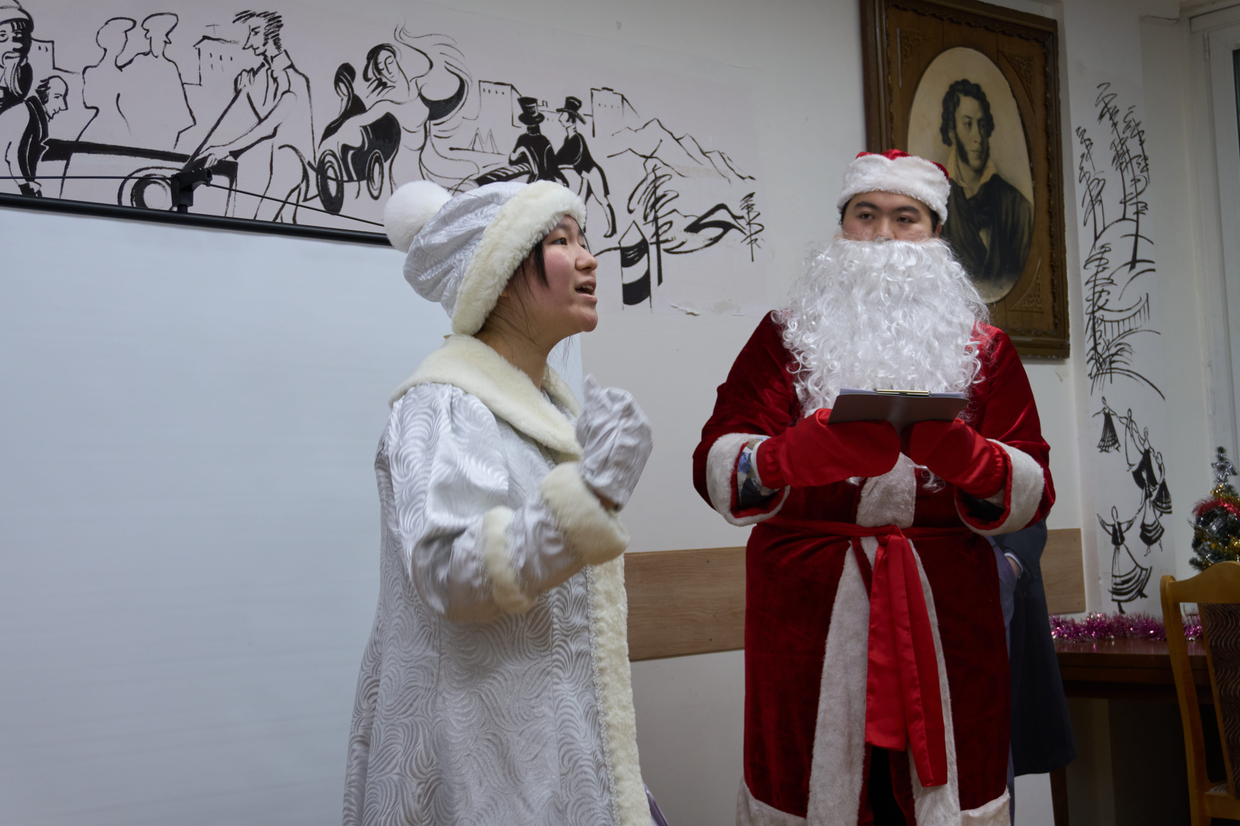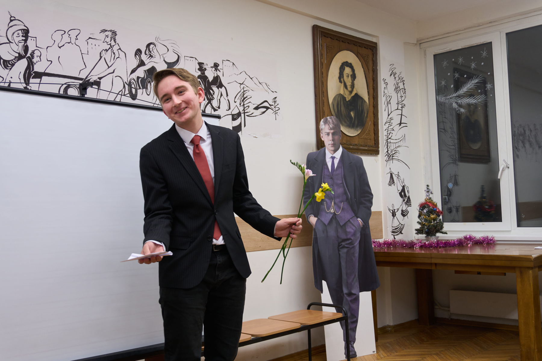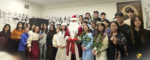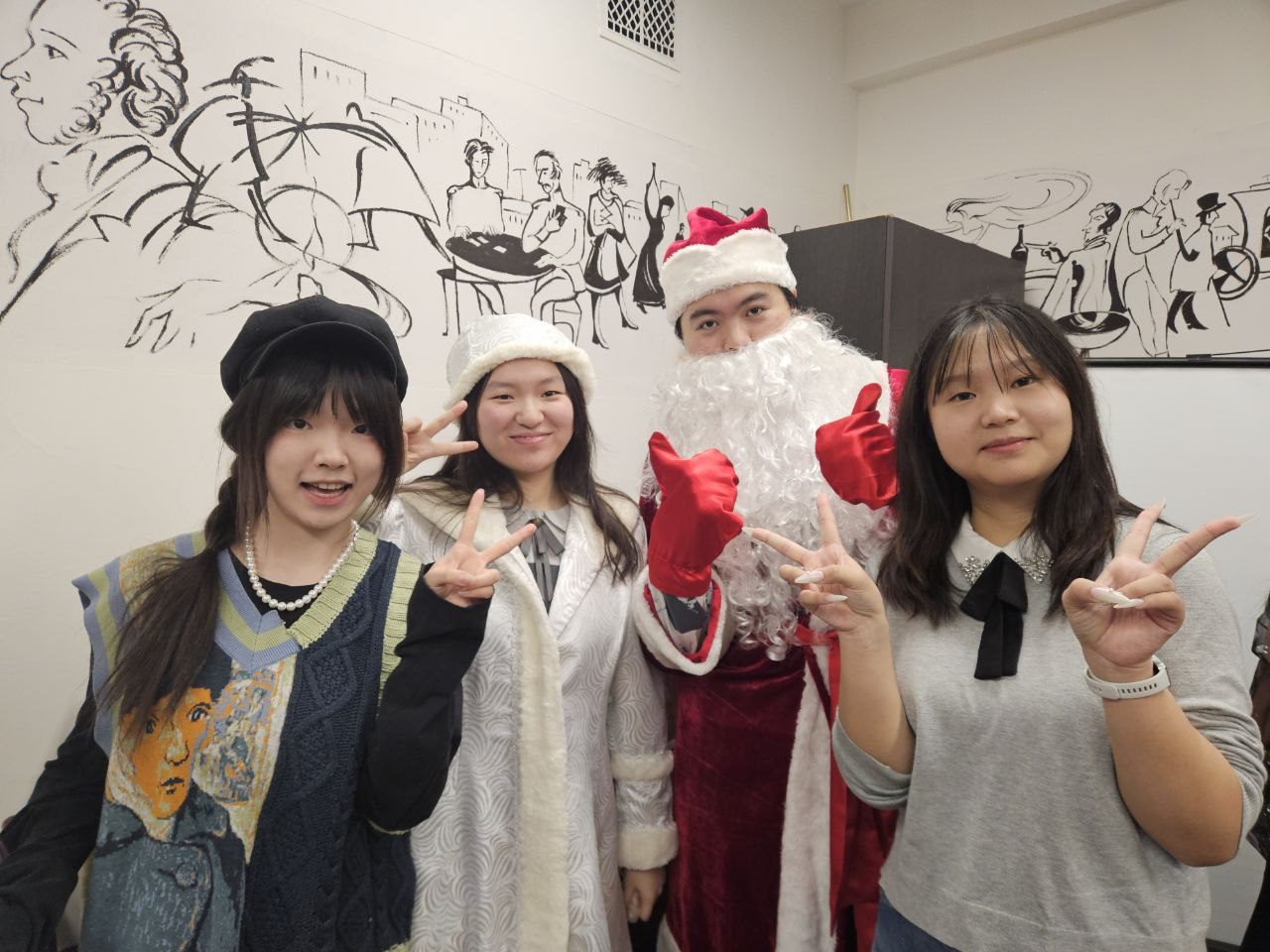 В 2025 году исполнилось 130 лет со дня рождения Сергея Александровича Есенина, одного из самых известных русских поэтов XX века. В его творчестве нашли отражение величие и мудрость природы, красота и спокойствие русской деревни, размах русской души, любовь к женщине, движение времени и бурление революции. 2 декабря 2025 г. в Пушкинской гостиной филологического факультета состоялся вечер иностранных стажёров, посвящённый жизни и творчеству Сергея Есенина. Учащиеся читали стихи, исполняли музыкальные произведения, выступали с докладами и театральными постановками, отвечали на вопросы праздничной викторины. Мероприятие также посетили особые гости – Дед Мороз (Лю Хаобо) и Снегурочка (Лу Юйхань), которые поздравили ребят с наступающими зимними праздниками и пожелали удачи на предстоящих зачётах и экзаменах.