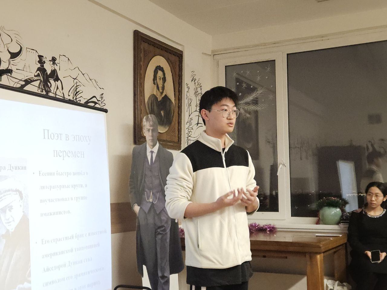 - Ван Жуйцзе (группа 54) – Доклад о жизни и творчестве Сергея Есенина
